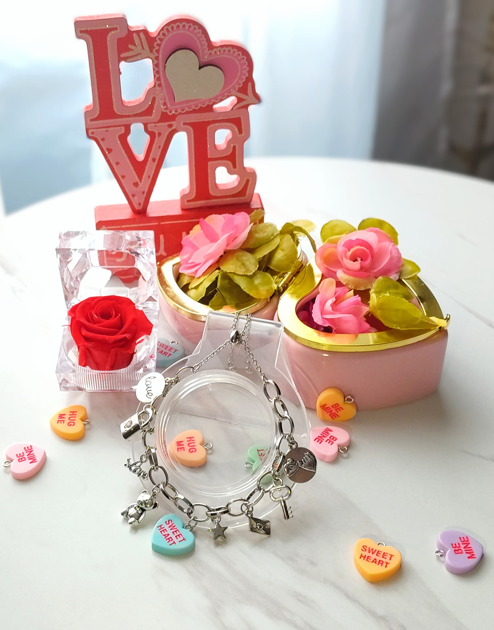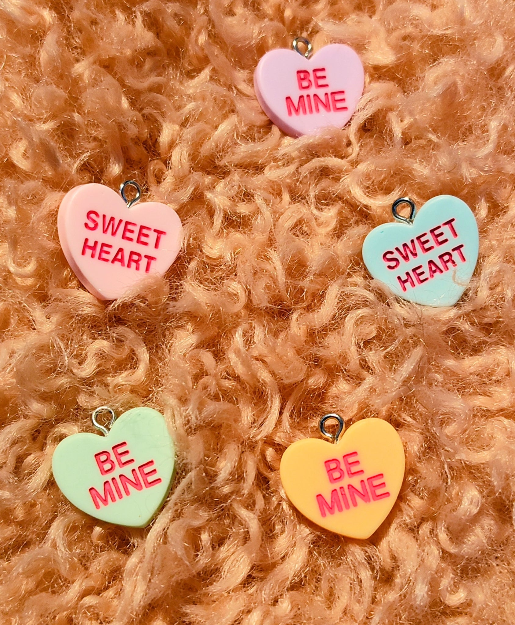 Valentine's Convo Heart,Bear Charm, Lock and Key Charm, Envolope Charm,Love plate Charm, Star Charm, And A Pinkey Promise plate charm...That's Dope A.F.