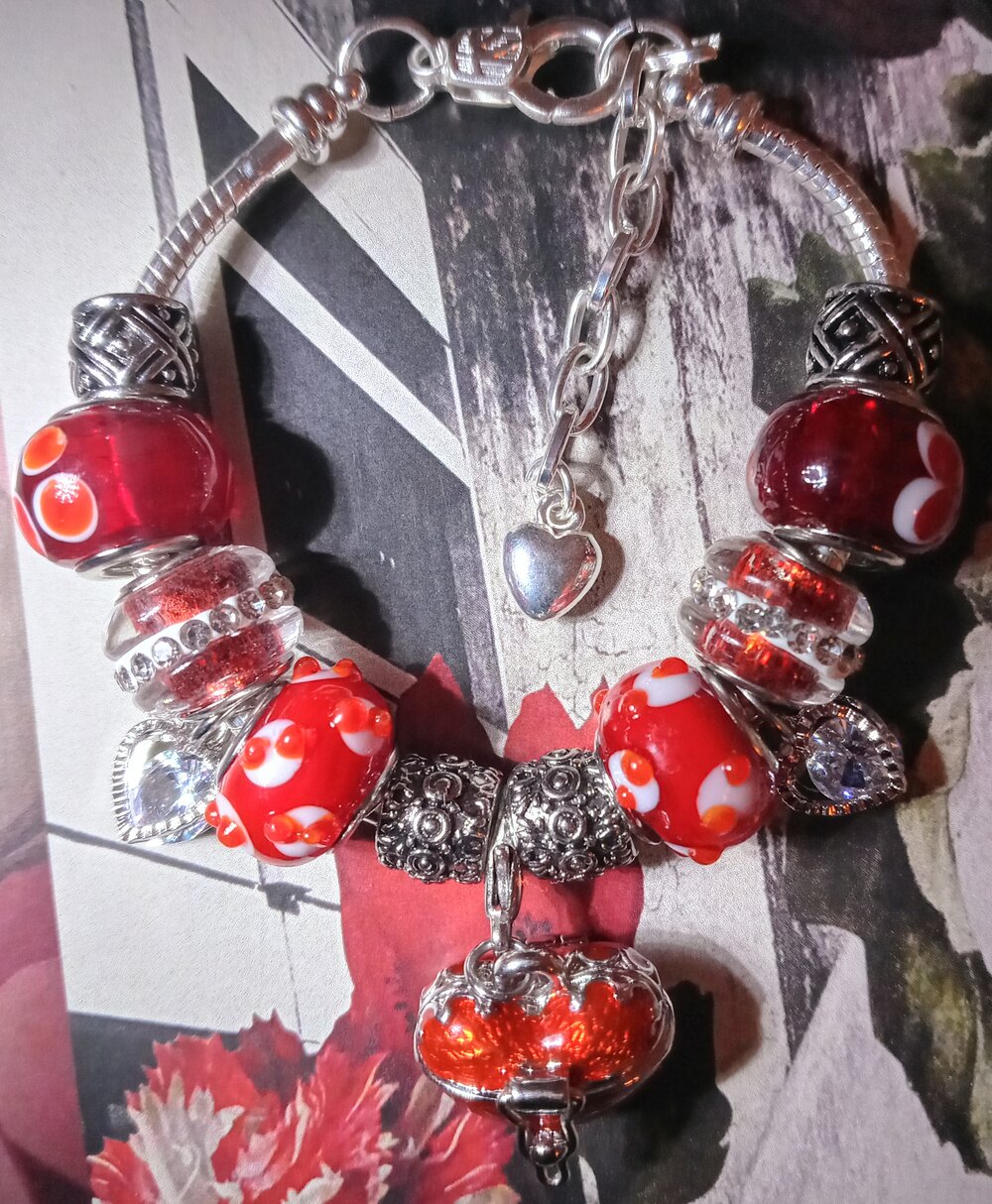Keeping you close to my heart. This 7.5 inch Silver snake chain bracelet will let you lock away sweet memories in the heart pendant centerpiece. This gorgeous bracelet comes in two variations of Bling Beads LUXURY PAN STYLE and is the perfect anytime gift for the one who holds your heart. (heart pendant really opens)...COME GET THE LOOK!!!