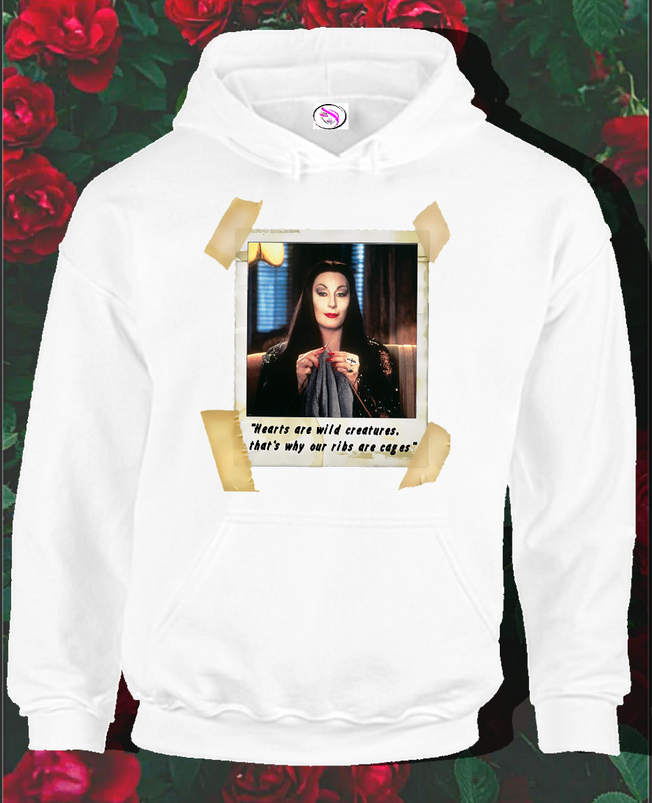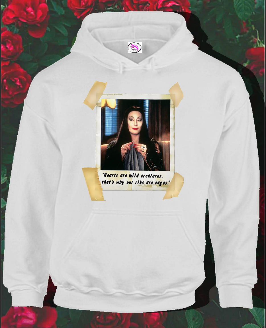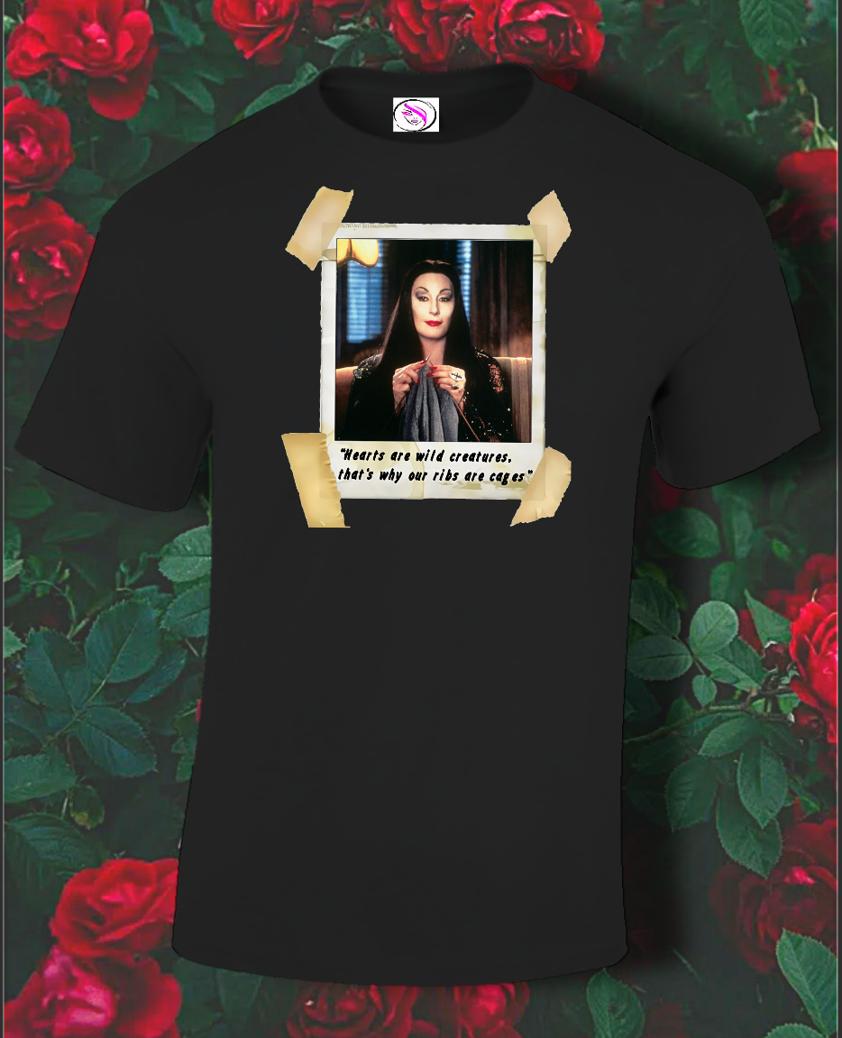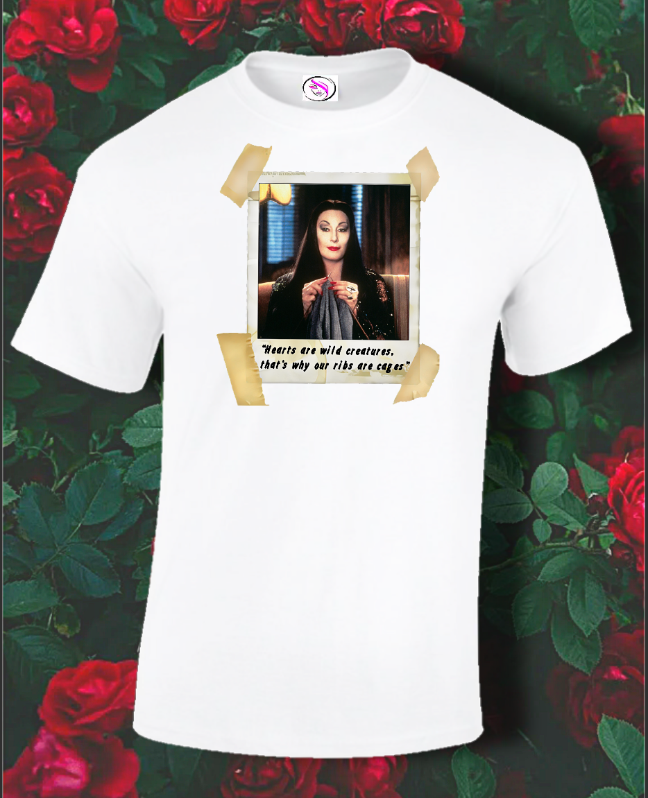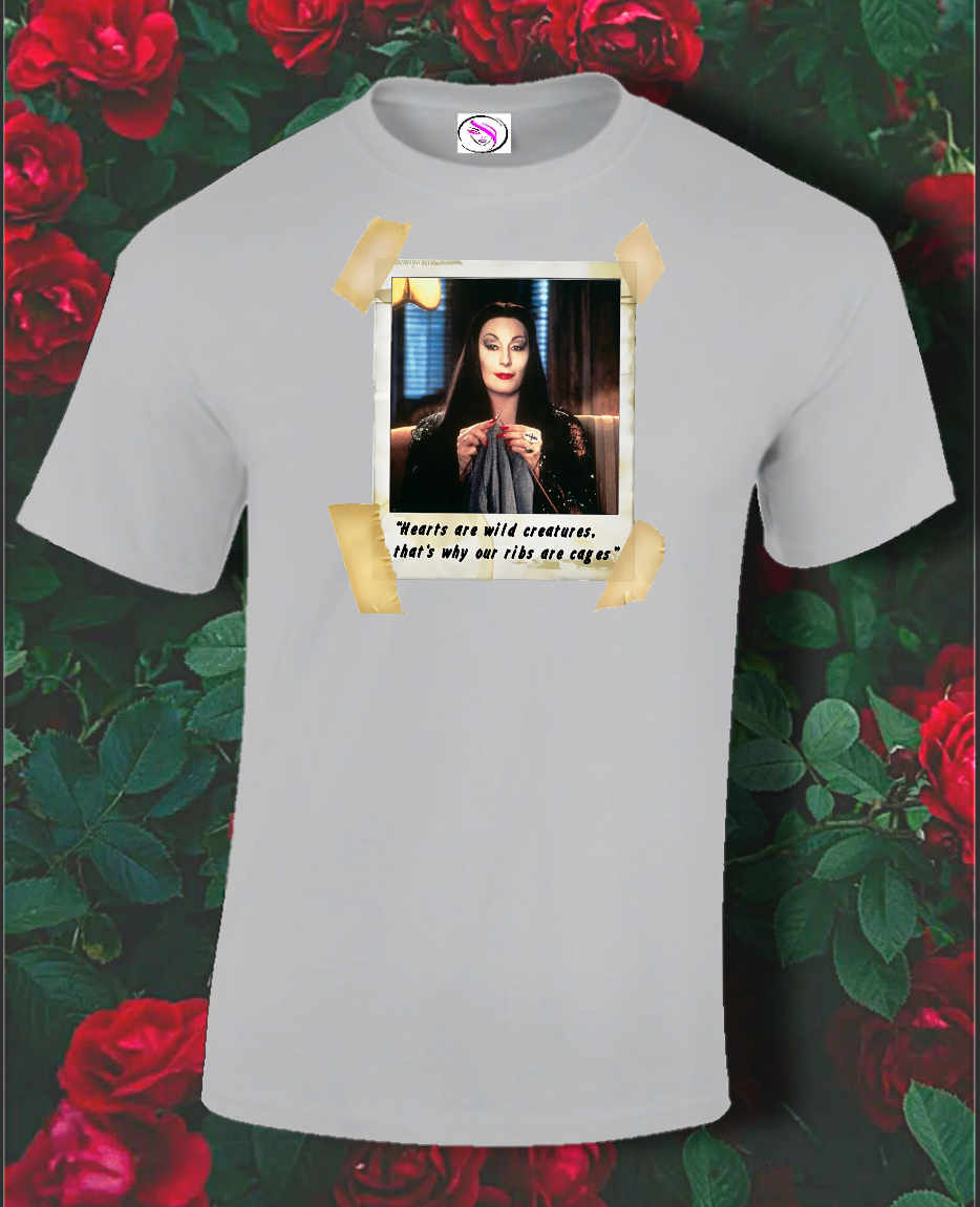 Feel the passion of Morticia....know that the statement is true. Hearts are untamed and our ribs are the only reason they dont leap from our chest to pursue their desires. Poetic Justice that this message is delivered by such an iconic lover.
