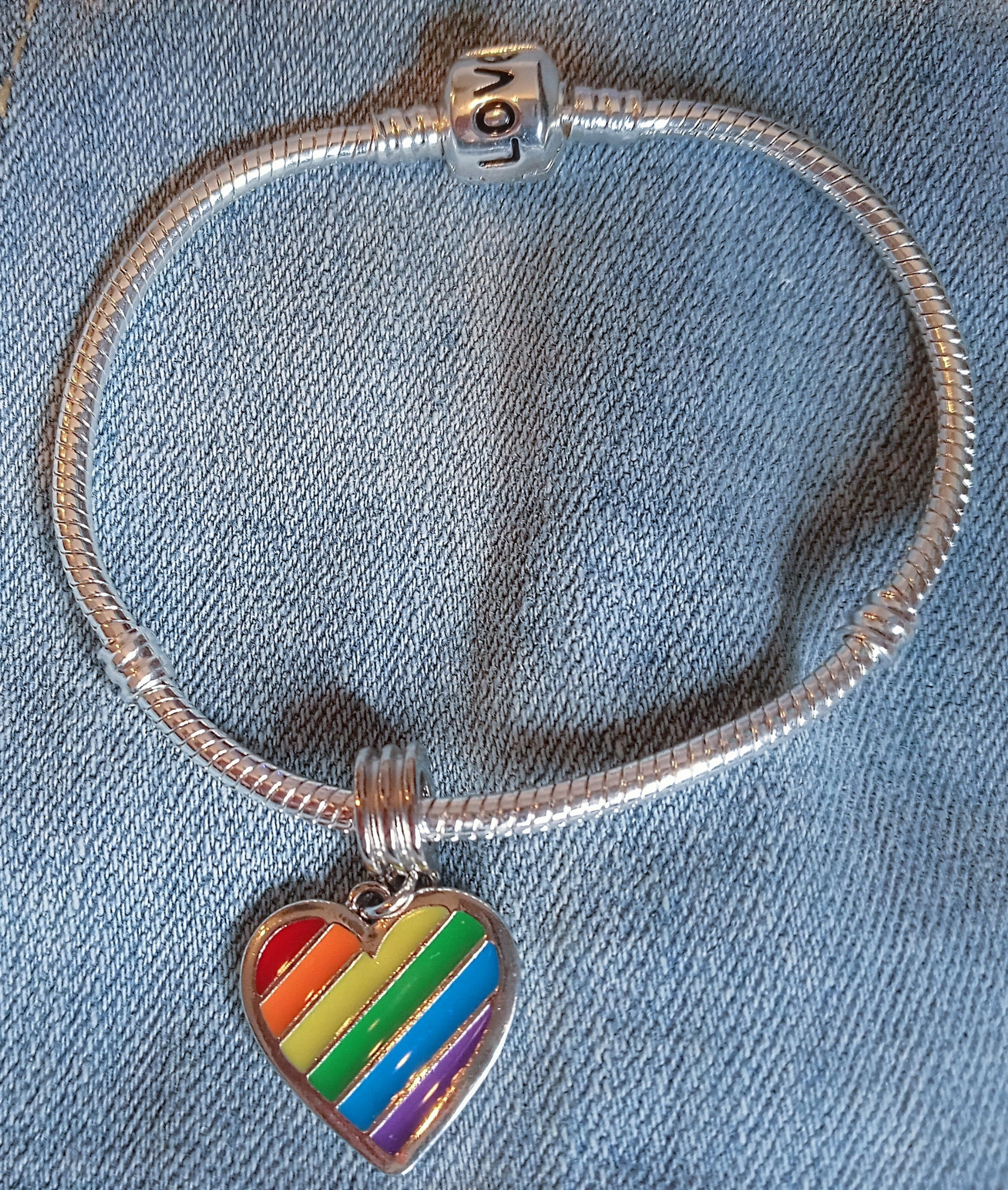 Hey you,....yes you!.....Show your pride with these awesome new Euro PAN Styled Bracelets. Each of these LUXURY PAN STYLE 3mm Snake chain Bracelets have a stamped message of "LOVE" and come Adorned with a PRIDE charm That you can be proud of. Vibrant rainbow colors that stand out no matter the occasion....AND GET THIS...Each purchase comes with a High-End quality Silver Charm Bead FREE...FREE...FREE.(while Supplies last)
